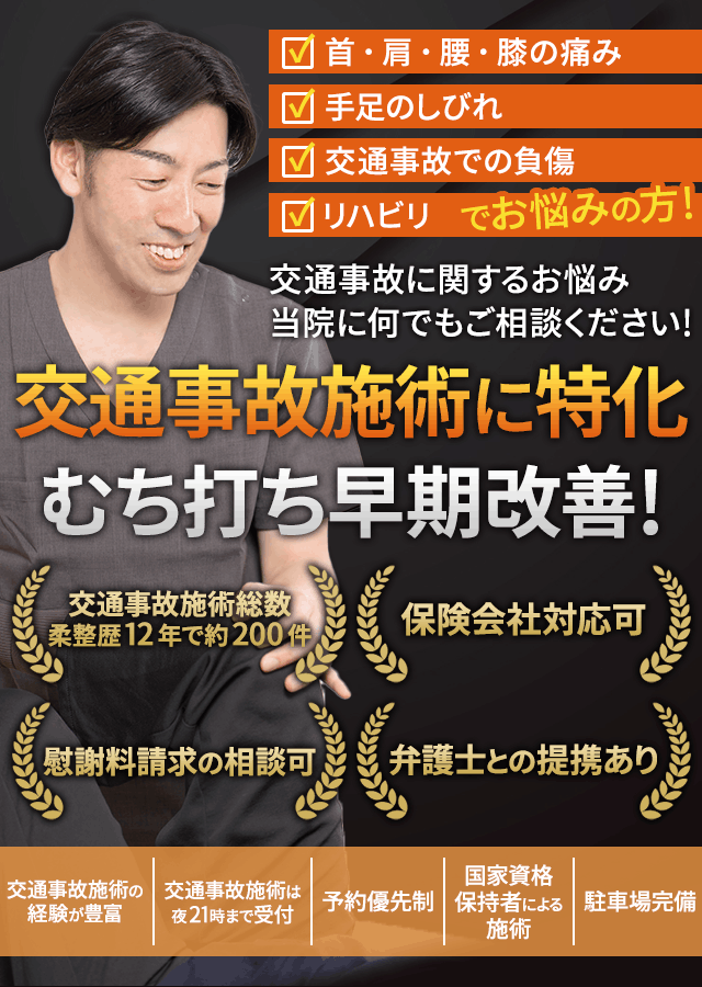 当院では、患者様の早期回復を最優先としながら、保険会社様との信頼関係構築も大切にしております。不明瞭な請求や過剰な施術を避け、透明性のある対応を心がけることで、三者すべてにとって納得できる関係づくりを目指しています。